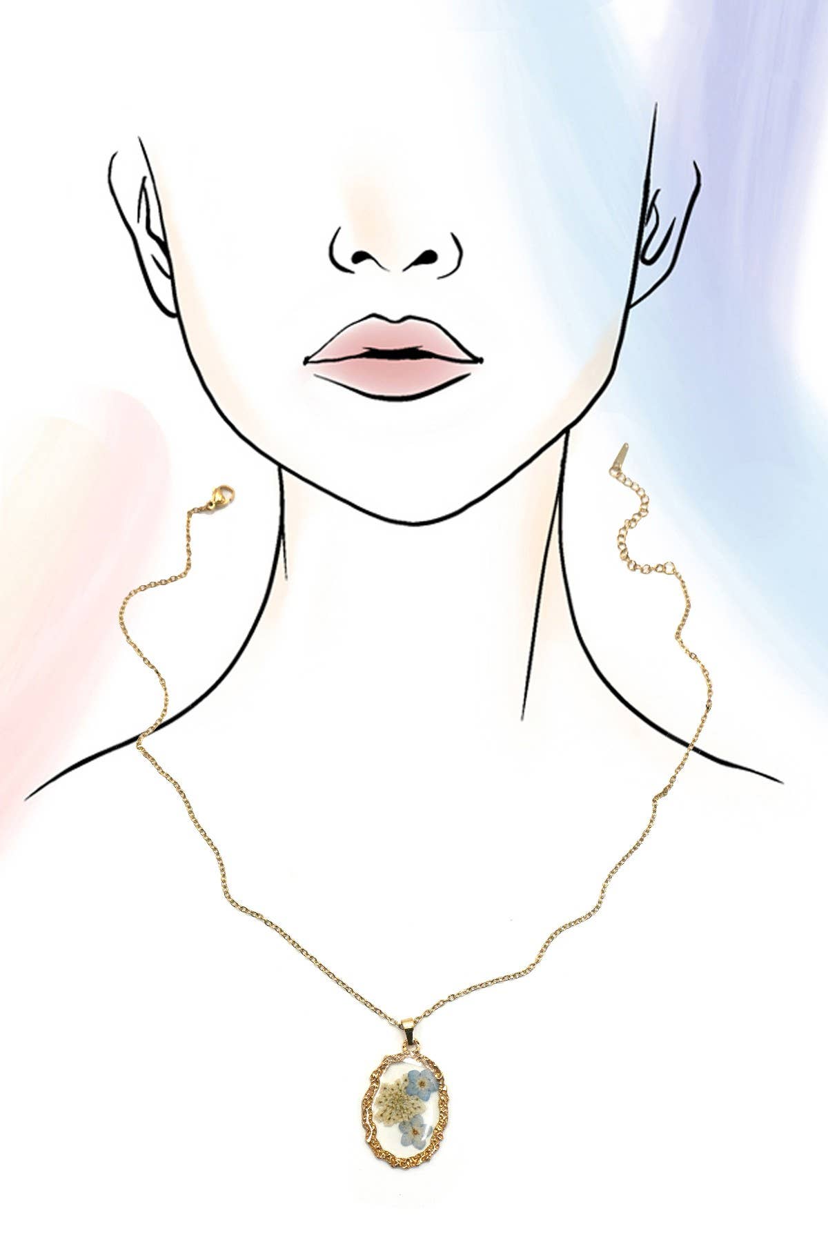 Wear your garden close to your heart with this stunning 18K stainless steel flower necklace. Each piece features a real pressed flower sealed beneath a delicate pendant—available in heart, oval, or round shapes—all finished with gleaming 18K gold trim. At 16 inches with an adjustable 2-inch extension, it's the perfect length for layering or solo styling. Built tough with hypoallergenic, tarnish-free stainless steel, this necklace laughs in the face of water, sweat, and everyday wear. No fading, no oxidation, just lasting sparkle that keeps up with your adventures.