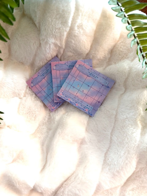 Have a quick thought to jot down? Or a small list to make? Why not brighten up your routine with these adorably designed 3x3" sticky notes? Available in 3 different designs with 50 pages in each pad.